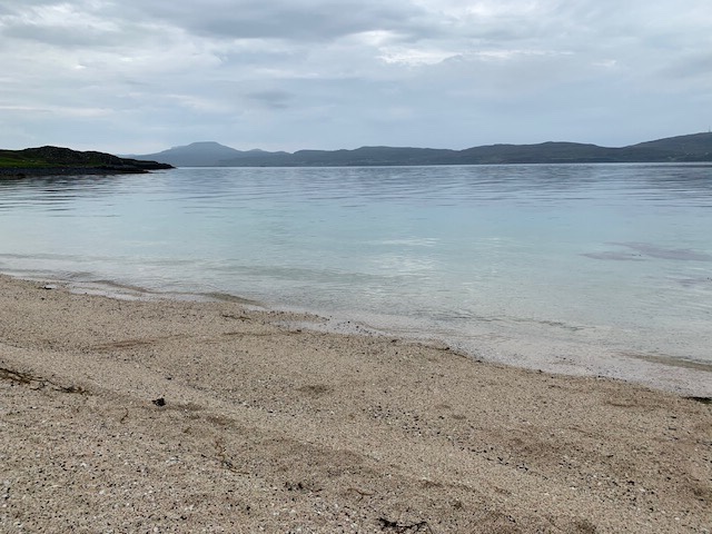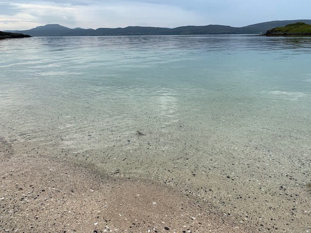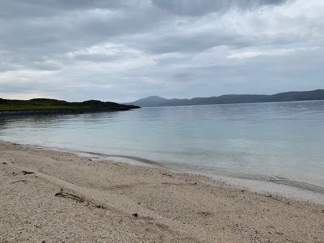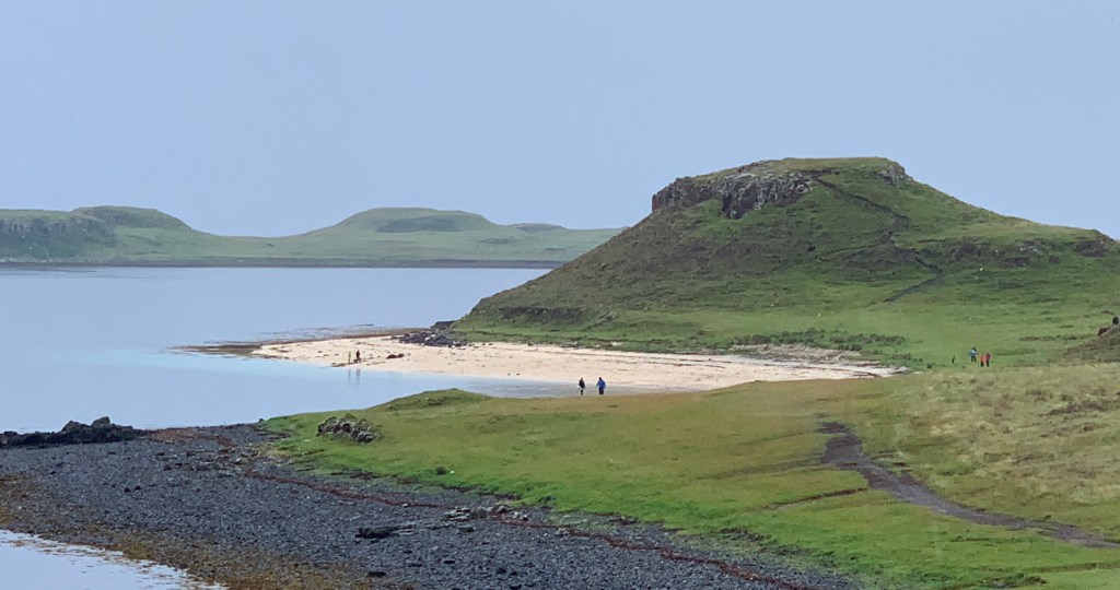 In search of some beautiful shoreline on Skye, I ventured out to find a beach created from coral, near Claigan. The coral is created from coralline algae which form large beds offshore and in life they are a dark pink colour. The currents of the waters break up the skeletons of dead maerl which are washed ashore and bleached by the sun. You can see the beach appear in the distance, from the path and it is so bright it is like a beacon, inviting you to come and encounter it’s beauty. As I approached the beach I could feel myself getting excited and transfixed by the brightness of the sands ahead.