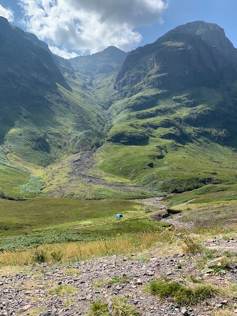 Glencoe was the last stop on my sabbatical, before we made our way home. We had two days in which to savour some of the delights of this glorious place. Camped at the bottom of the glen, I sat outside our motorhome on our first evening here with my OS map of the area and planned myself a wee walk up the glen.